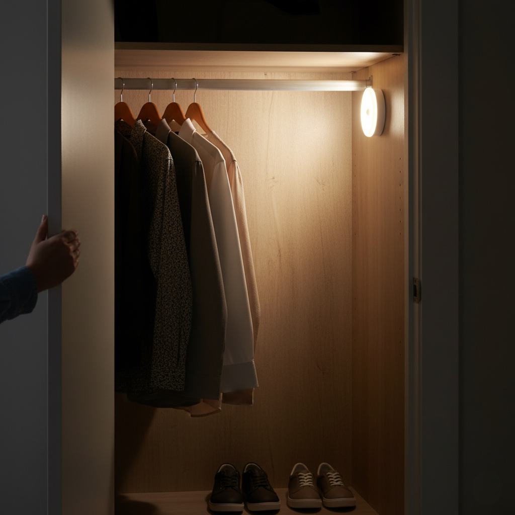 Med sin magnetiska fästning och starka självhäftande baksida kan du placera den var som helst – i hallen, sovrummet, garderoben eller trappan.